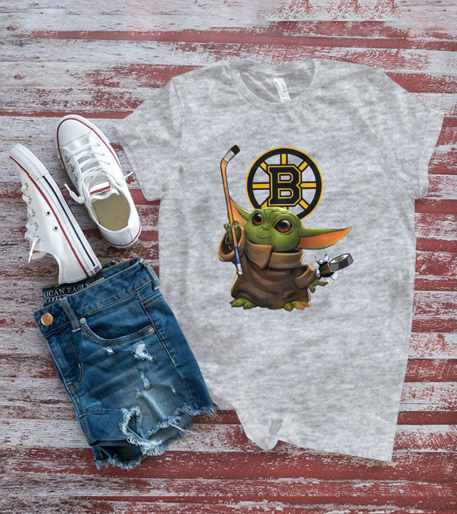 Boston Bruins Baby Yoda Hockey Stick Puck Character T-Shirt