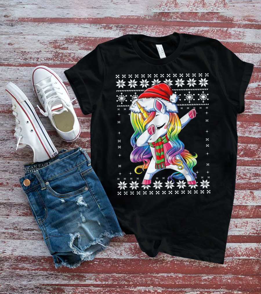 The Unicorn Dabbing Santa Christmas Shirt offers a regular fit. Made from 100% ring-spun cotton that is pre-shrunk to help maintain size and shape after washing. Features reinforced construction details for durability. Available in U.S. standard sizes S-5XL to accommodate various body types.