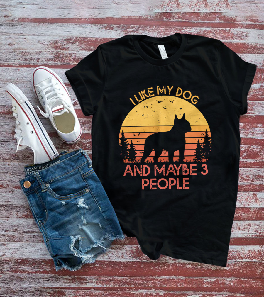 I Like My Dog And Maybe 3 People Sunset Silhouette With Trees And Birds T-Shirt