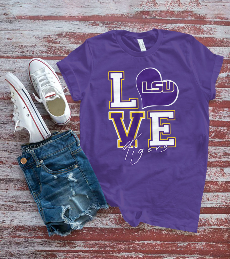 The LOVE LSU Tigers Shirt offers a regular fit. Made from 100% ring-spun cotton that is pre-shrunk to help maintain size and shape after washing. Features reinforced construction details for durability. Available in U.S. standard sizes S-5XL to accommodate various body types.
