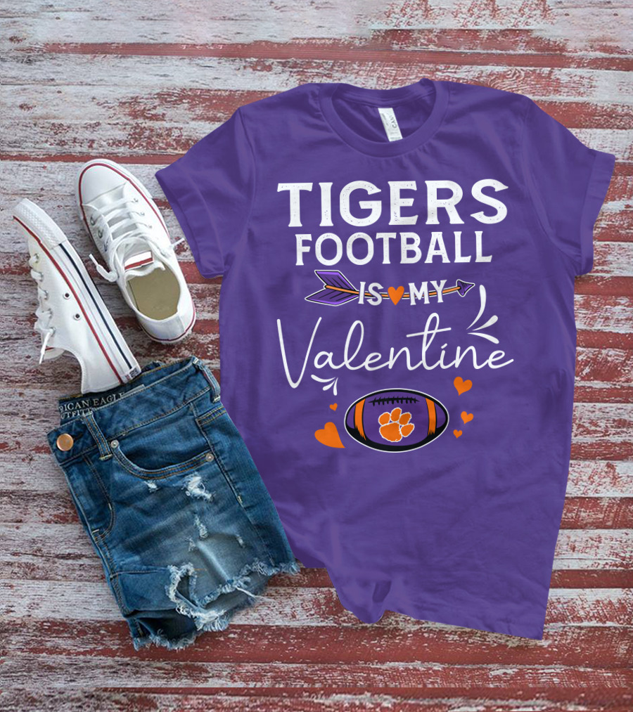 Tigers Football Is My Valentine With Paw Print And Hearts T-Shirt