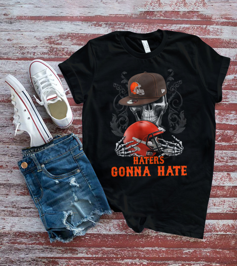 Haters Gonna Hate Cleveland Browns Skull With Helmet And Cap T-Shirt