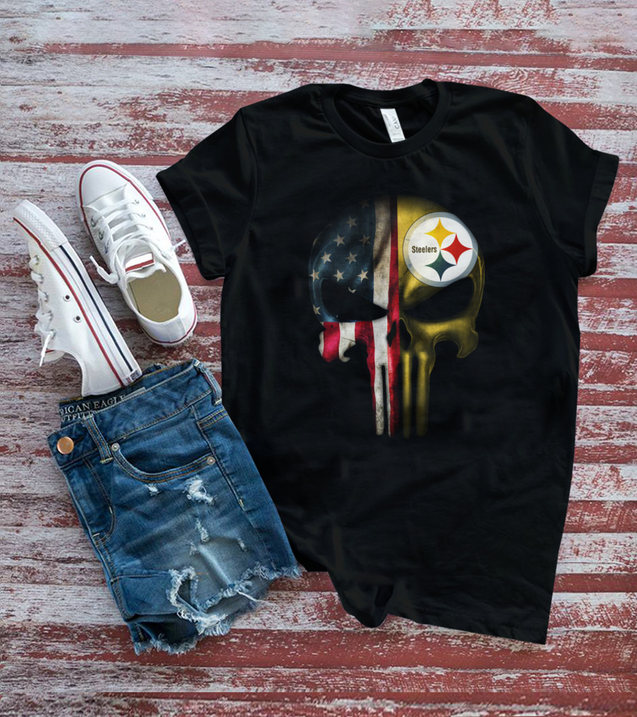 The Punisher Skull American Flag Steelers Shirt offers a regular fit. Made from 100% ring-spun cotton that is pre-shrunk to help maintain size and shape after washing. Features reinforced construction details for durability. Available in U.S. standard sizes S-5XL to accommodate various body types.