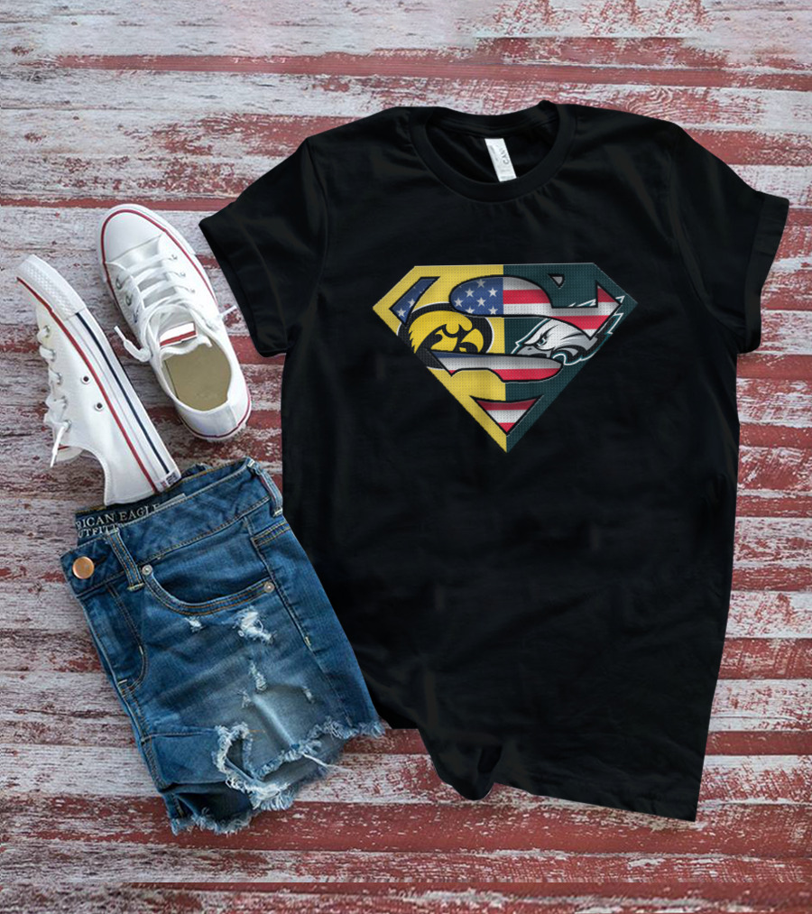 Iowa Hawkeyes Eagles Superman Blended Usa Flag T-Shirt