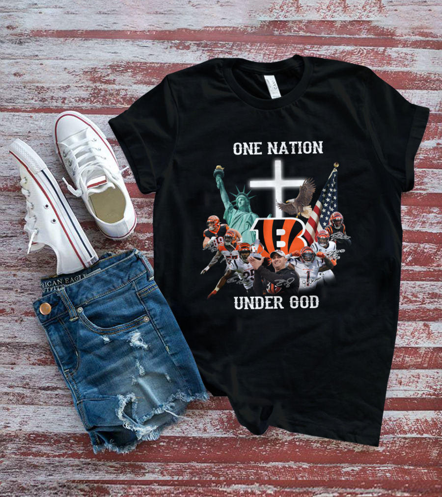 Cincinnati Bengals One Nation Under God Statue Of Liberty American Flag Eagle Football Players T-Shirt