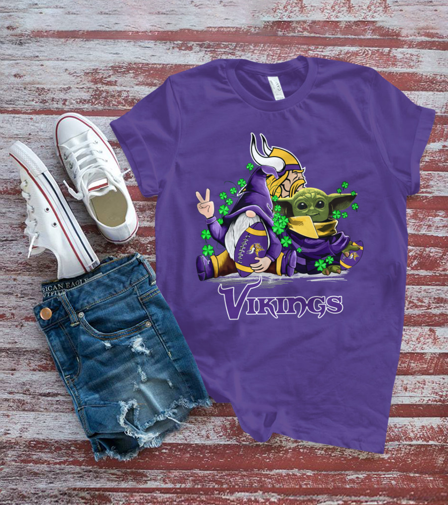 Leprechauns Gnomes Baby Yoda Hug Vikings Football Team T-Shirt