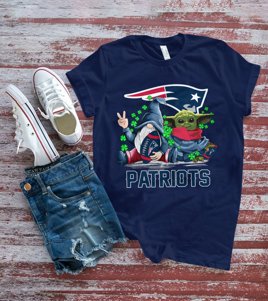 Leprechauns Gnomes Baby Yoda New England Patriots Football Icons T-Shirt