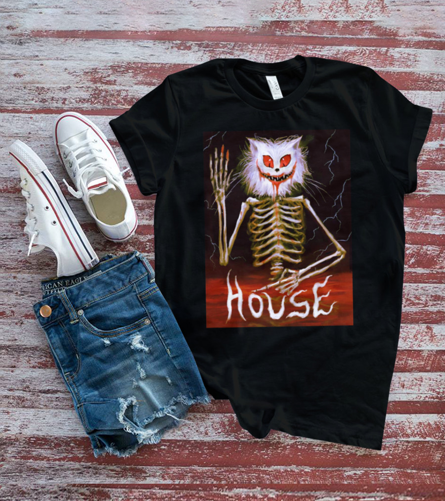 House Skeleton Cat Spirit With Lightning T-Shirt