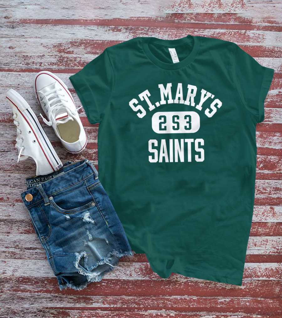 The St. Mary's High School Saints 2S3 Team Spirit Shirt offers a regular fit. Made from 100% ring-spun cotton that is pre-shrunk to help maintain size and shape after washing. Features reinforced construction details for durability. Available in U.S. standard sizes S-5XL to accommodate various body types.