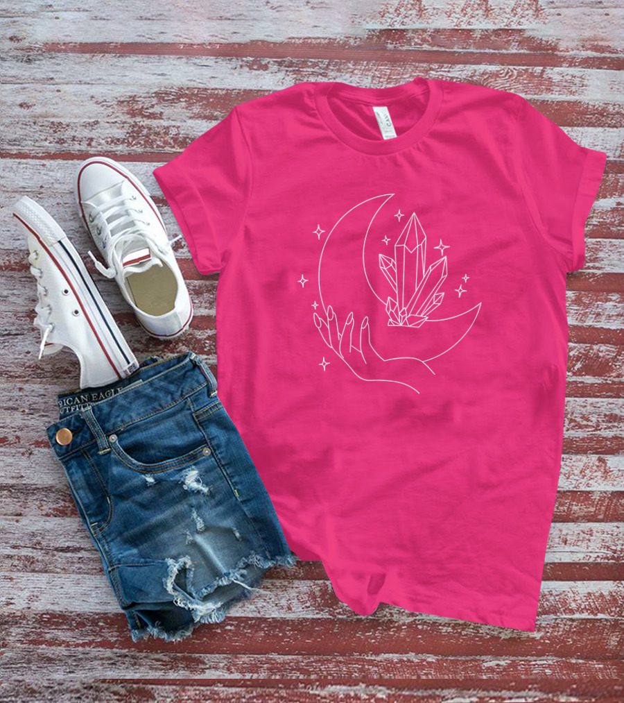The Eleanor Neale Moon Crystal Hand Stars Merch Shirt offers a regular fit. Made from 100% ring-spun cotton that is pre-shrunk to help maintain size and shape after washing. Features reinforced construction details for durability. Available in U.S. standard sizes S-5XL to accommodate various body types.