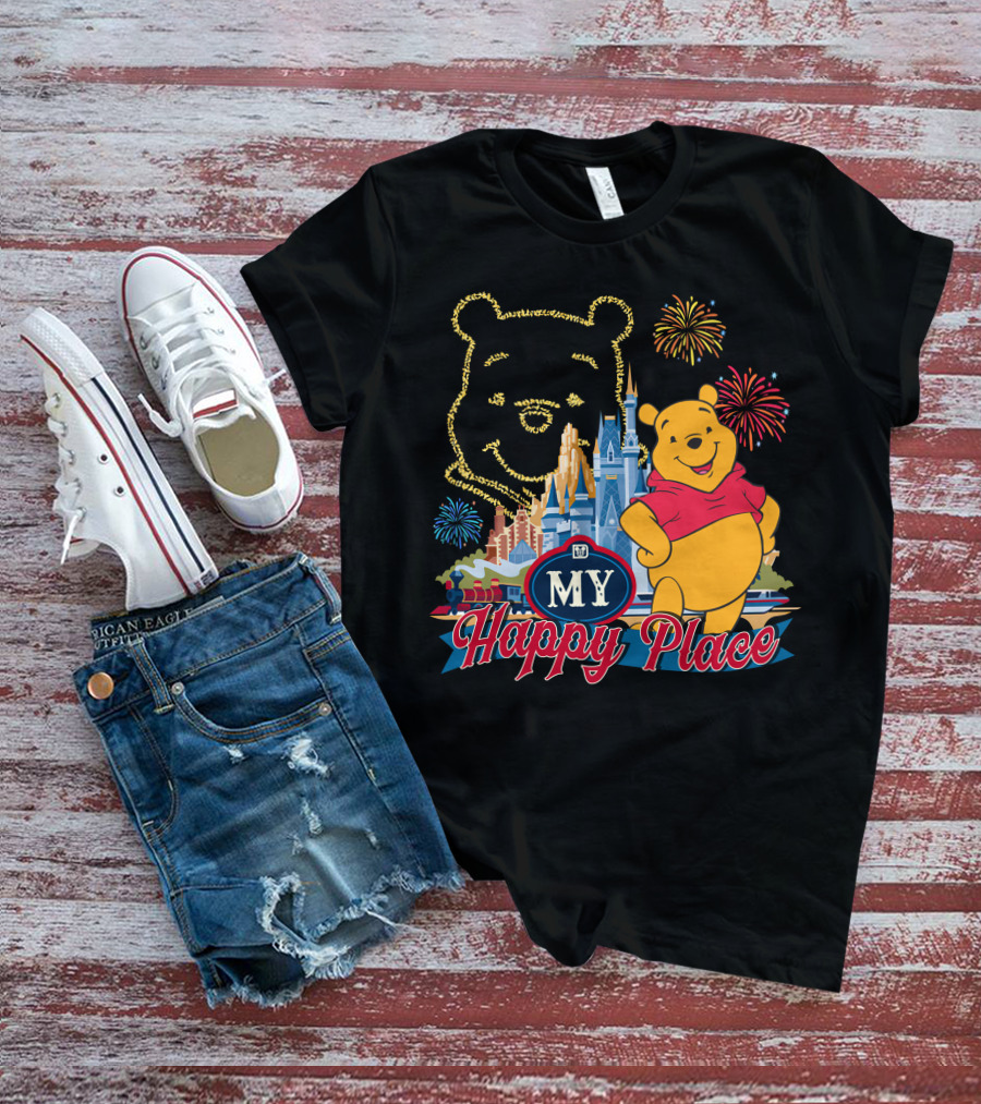 The My Happy Place Pooh Fireworks Magic Kingdom Shirt offers a regular fit. Made from 100% ring-spun cotton that is pre-shrunk to help maintain size and shape after washing. Features reinforced construction details for durability. Available in U.S. standard sizes S-5XL to accommodate various body types.