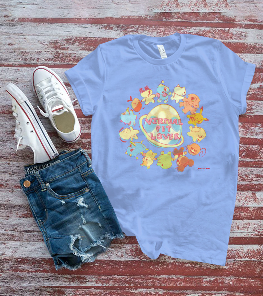 The Virtual Pet Lover Colorful Cute Characters Circle Shirt offers a regular fit. Made from 100% ring-spun cotton that is pre-shrunk to help maintain size and shape after washing. Features reinforced construction details for durability. Available in U.S. standard sizes S-5XL to accommodate various body types.