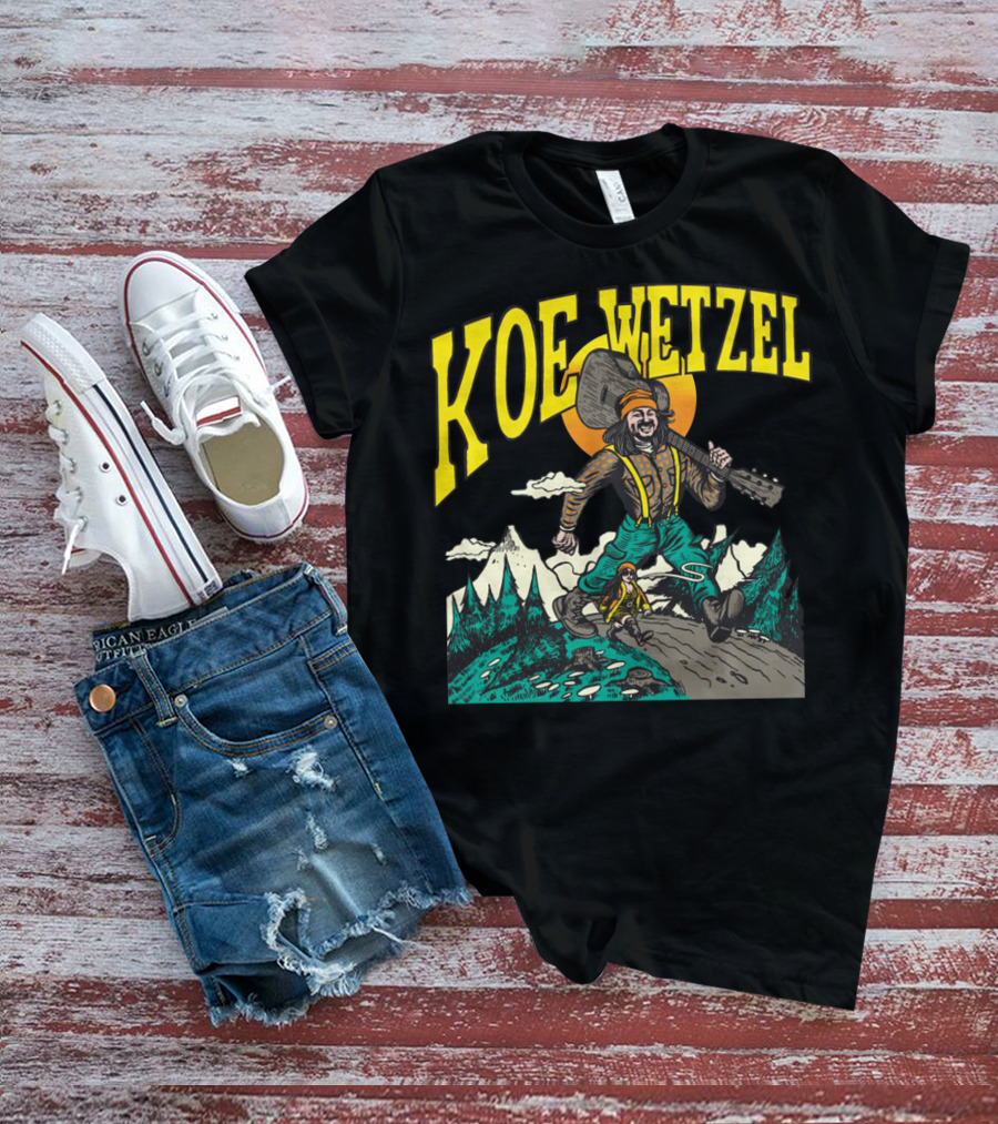 The KOE WETZEL Mountain Hiker with Guitar and Sun Motif Shirt offers a regular fit. Made from 100% ring-spun cotton that is pre-shrunk to help maintain size and shape after washing. Features reinforced construction details for durability. Available in U.S. standard sizes S-5XL to accommodate various body types.