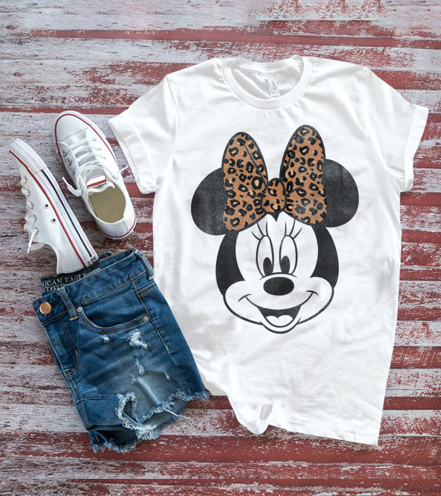 Minnie Mouse Leopard Print Bow Disney Mickey And Friends T-Shirt
