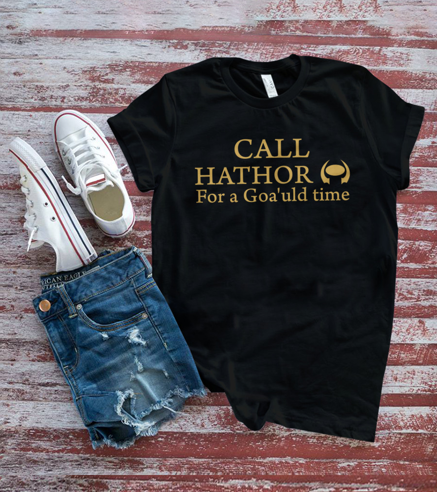 The Suanne Braun Call Hathor For a Goa'uld Time Shirt offers a regular fit. Made from 100% ring-spun cotton that is pre-shrunk to help maintain size and shape after washing. Features reinforced construction details for durability. Available in U.S. standard sizes S-5XL to accommodate various body types.