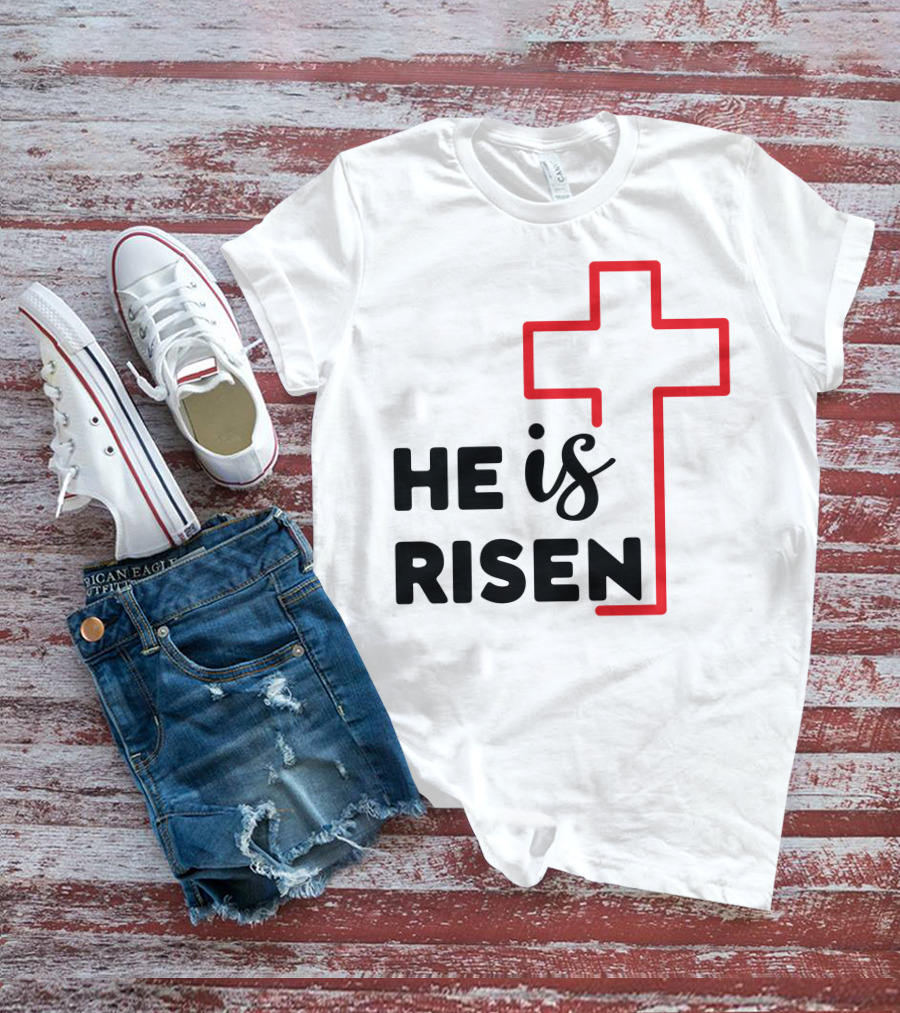 The HE IS RISEN Cross Outline Shirt offers a regular fit. Made from 100% ring-spun cotton that is pre-shrunk to help maintain size and shape after washing. Features reinforced construction details for durability. Available in U.S. standard sizes S-5XL to accommodate various body types.