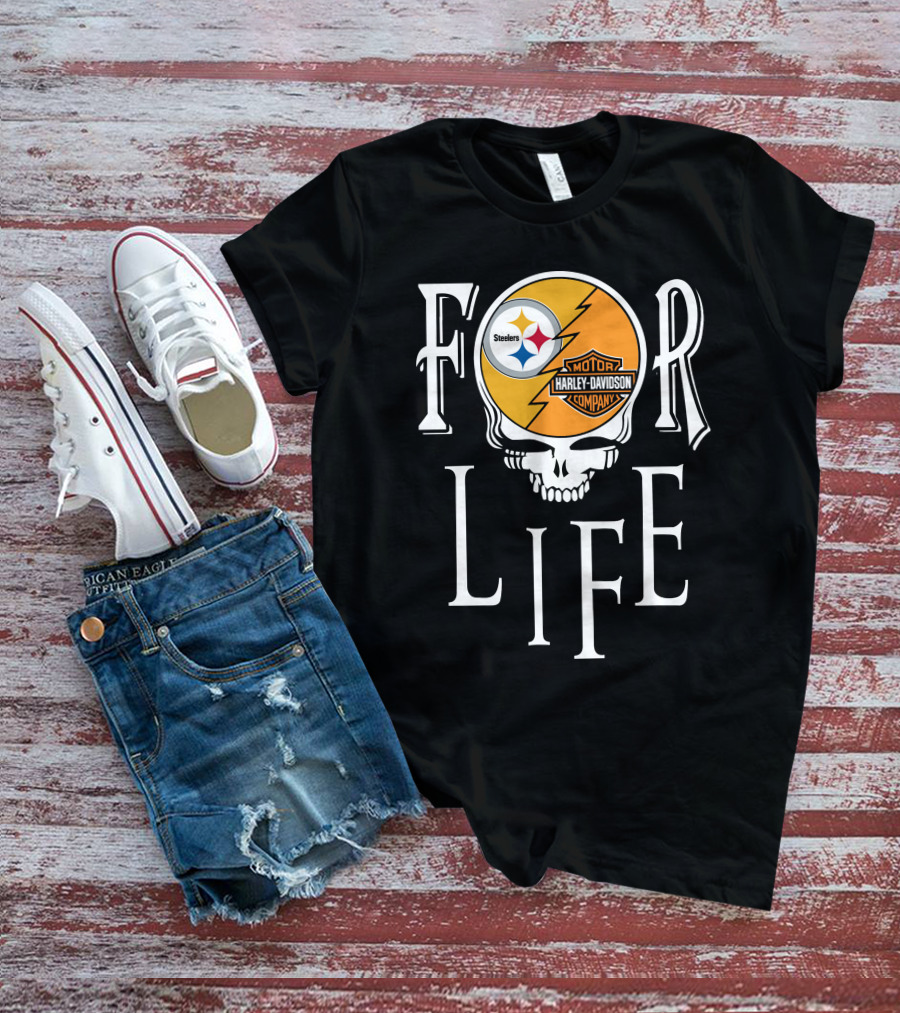 Pittsburgh Steelers Harley Davidson Skull For Life Nfl Fandom T-Shirt