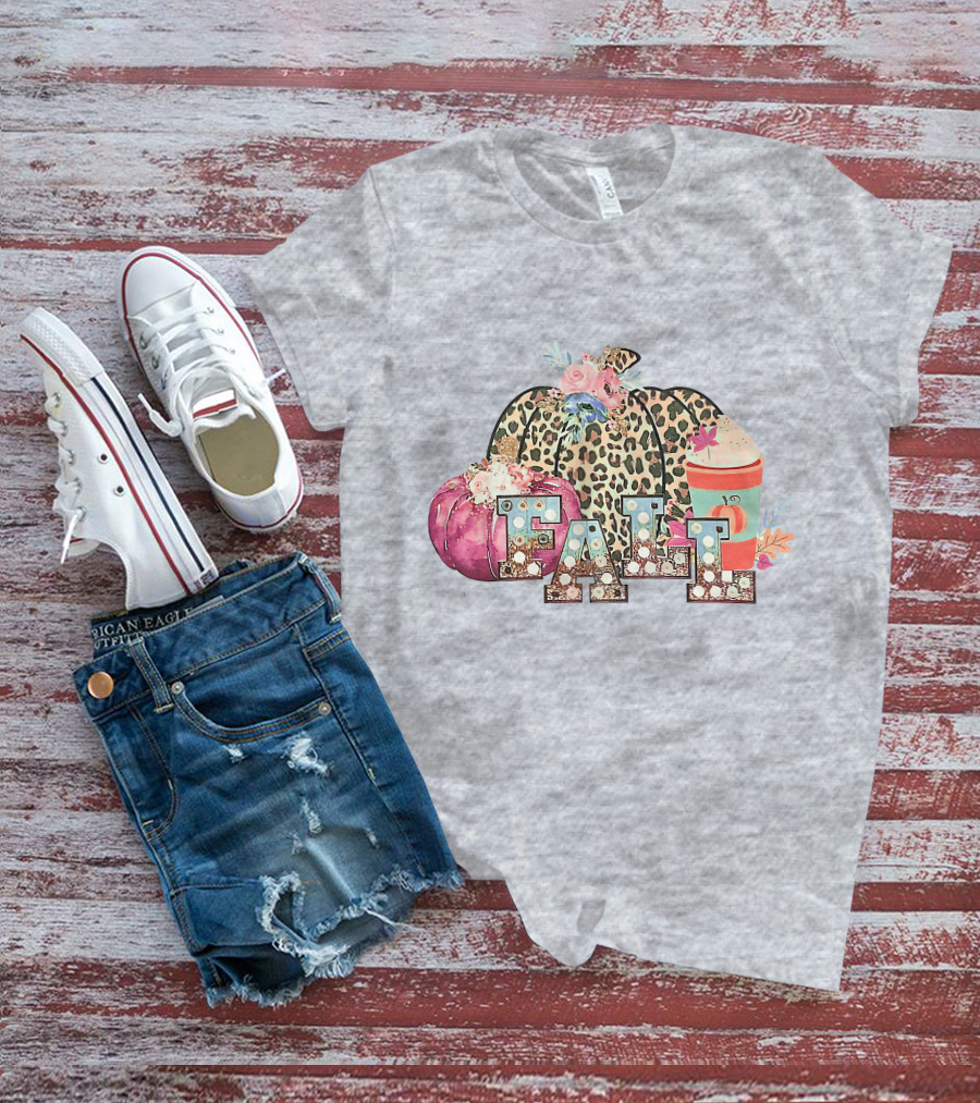 The FALL Leopard Print Pumpkin with Coffee Latte and Flowers Shirt offers a regular fit. Made from 100% ring-spun cotton that is pre-shrunk to help maintain size and shape after washing. Features reinforced construction details for durability. Available in U.S. standard sizes S-5XL to accommodate various body types.