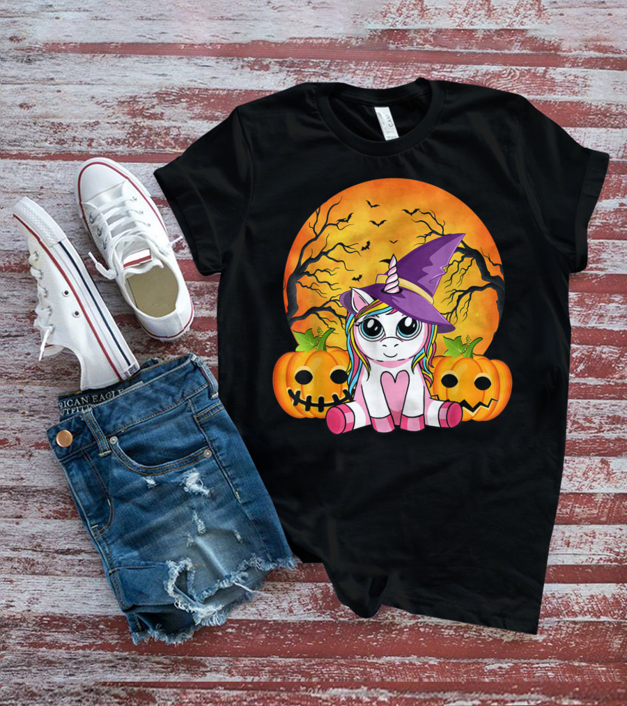 Witchy Unicorn Halloween With Pumpkins And Full Moon T-Shirt