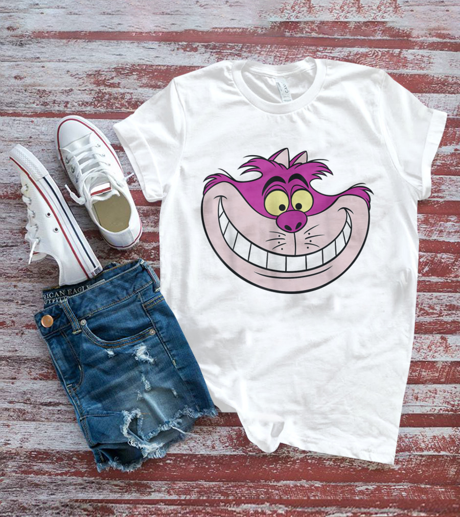 The Disney Alice in Wonderland Cheshire Cat Grinning Face Shirt offers a regular fit. Made from 100% ring-spun cotton that is pre-shrunk to help maintain size and shape after washing. Features reinforced construction details for durability. Available in U.S. standard sizes S-5XL to accommodate various body types.
