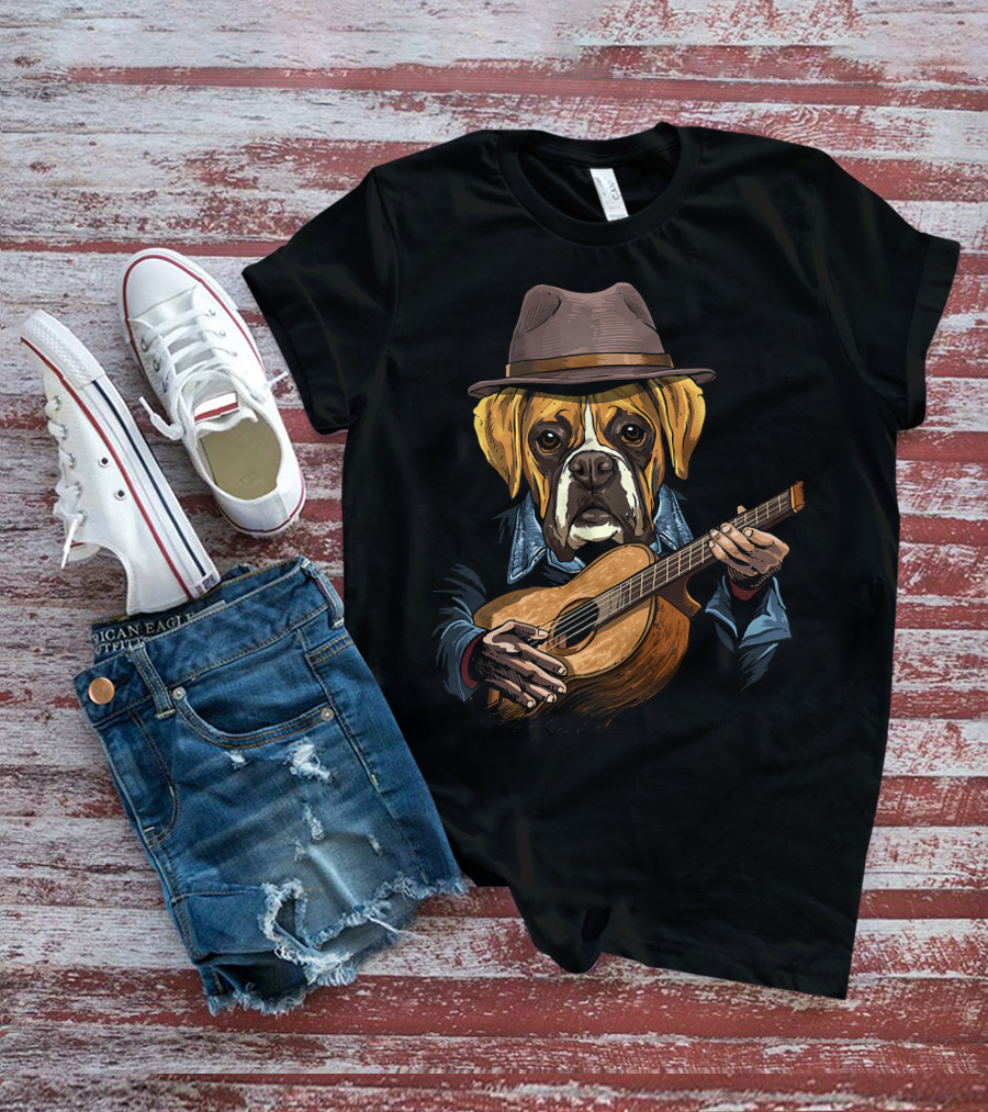 Acoustic Guitar Boxer Dog Guitar Player Guitarist T-Shirt