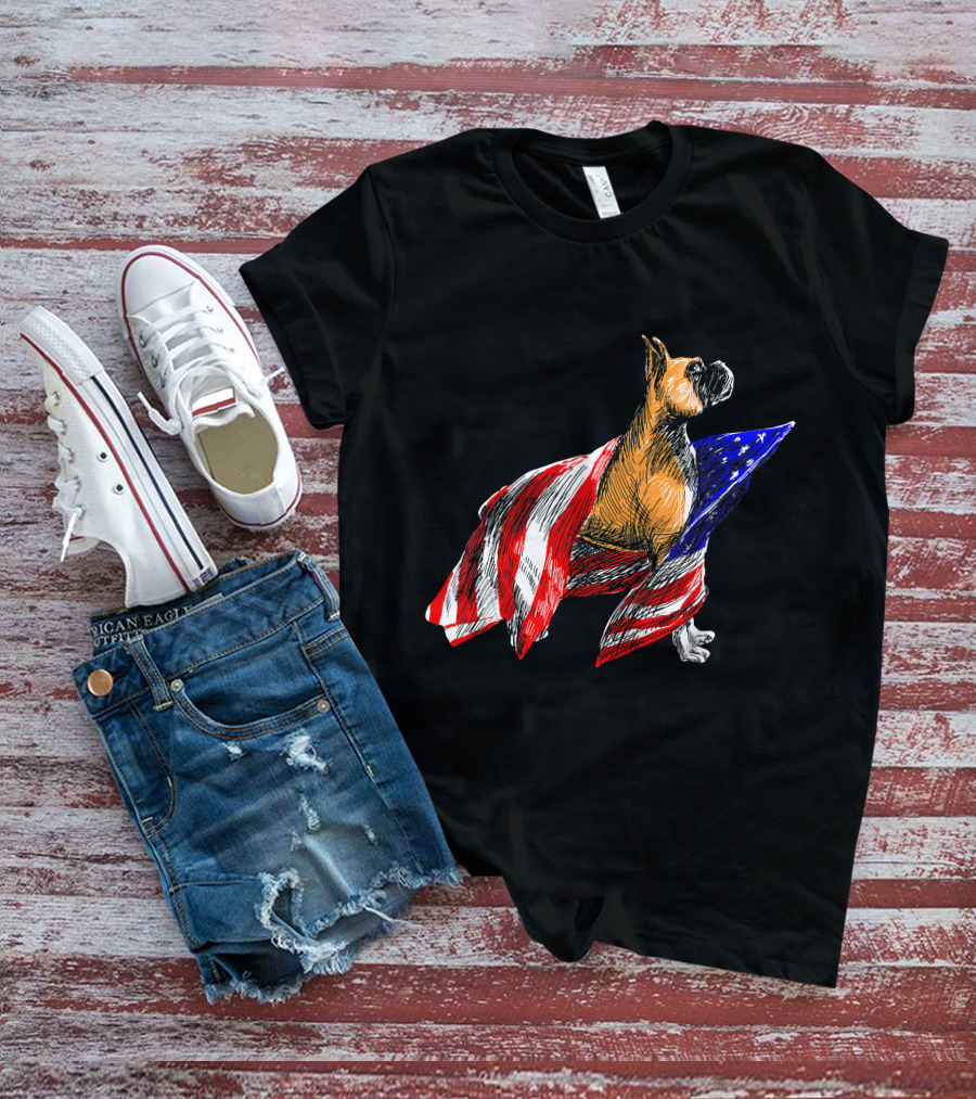 Boxer Dog Wrapped In American Flag Patriotic Symbol Dogs T-Shirt