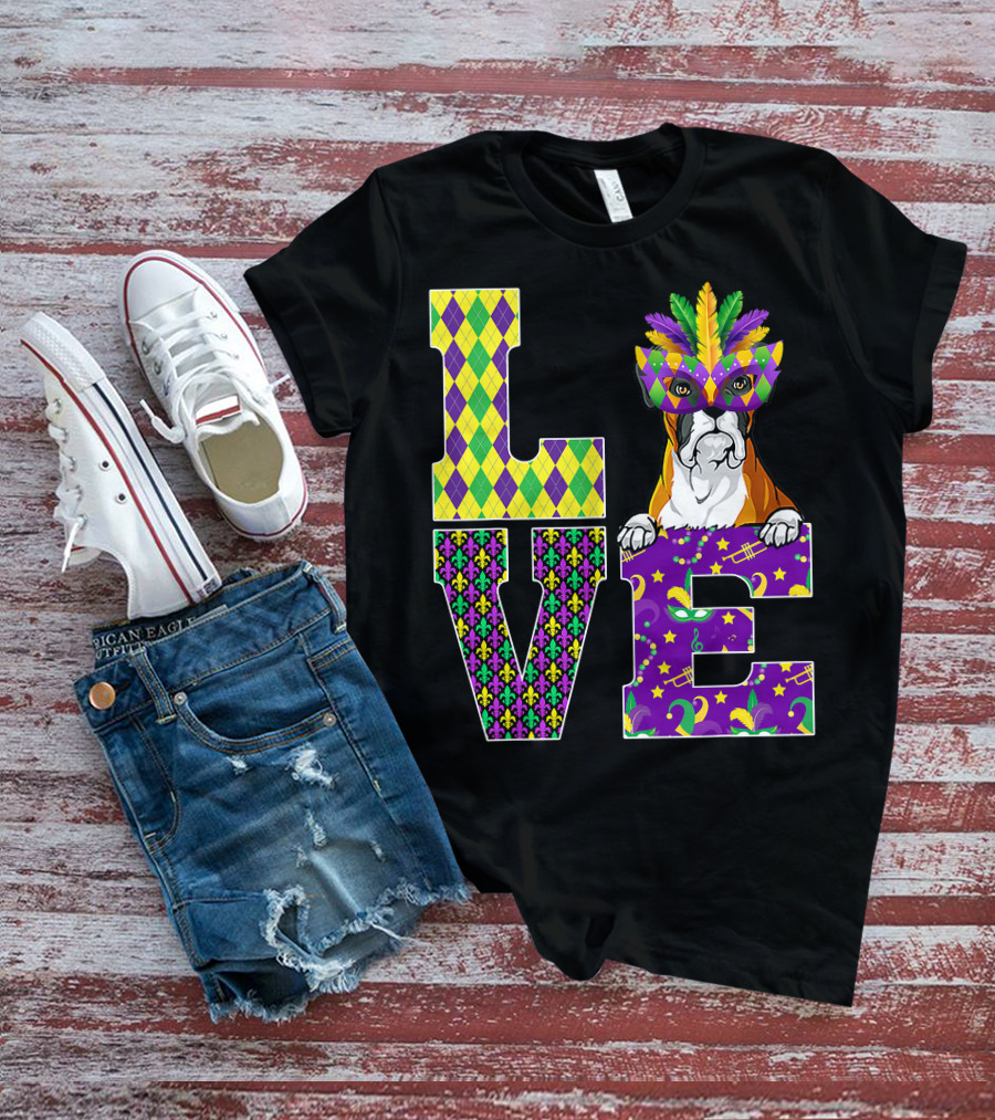 Boxer Dog Lover Mardi Gras Costume Mask Fleur De Lis Pattern Love T-Shirt