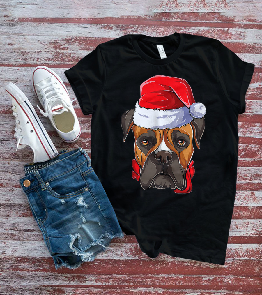 Boxer Dog Santa Hat Christmas Girls T-Shirt