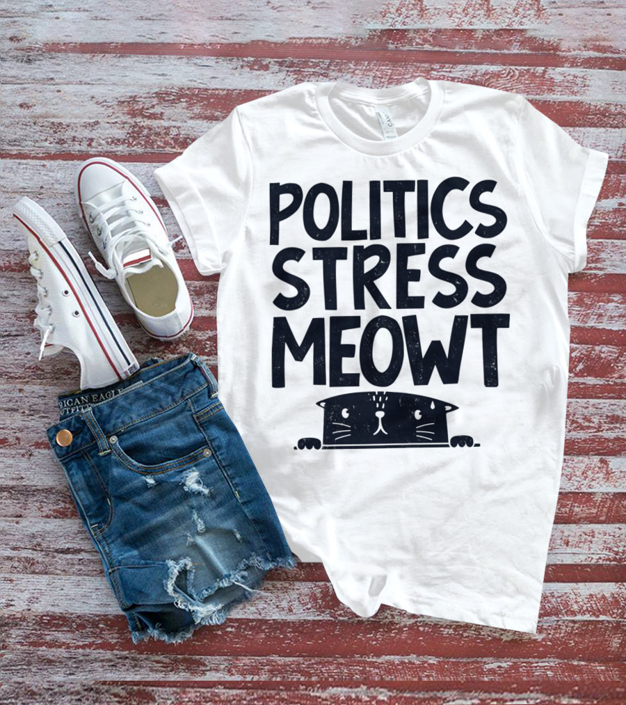 Politics Stress Meowt Cat Peeking Out T-Shirt