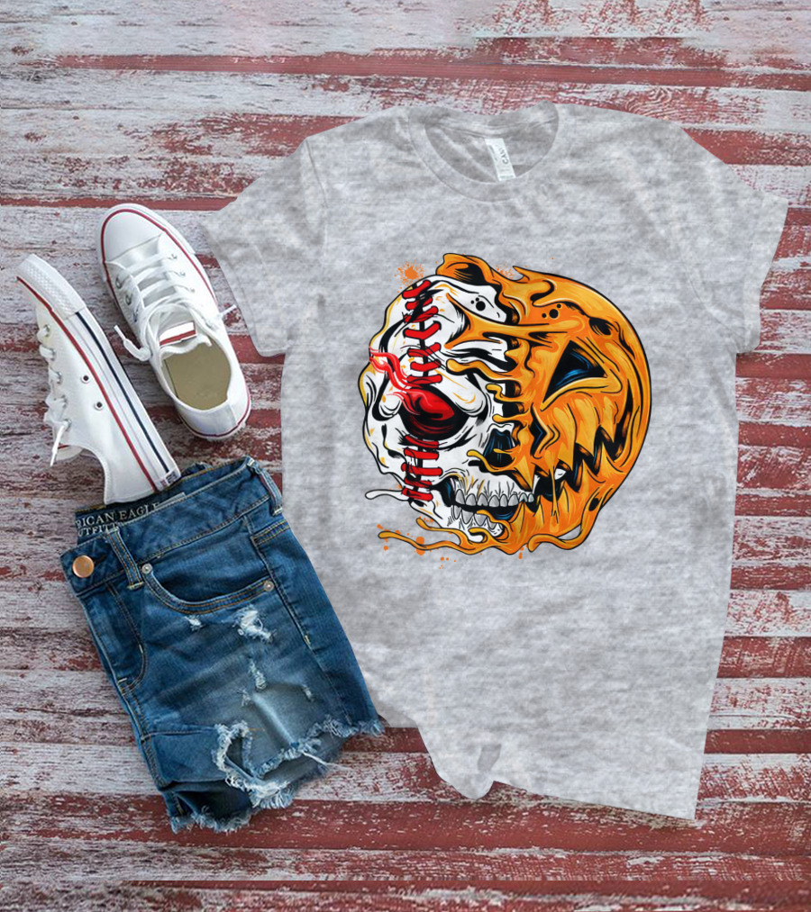 Baseball Pumpkin Skull Halloween Fusion T-Shirt