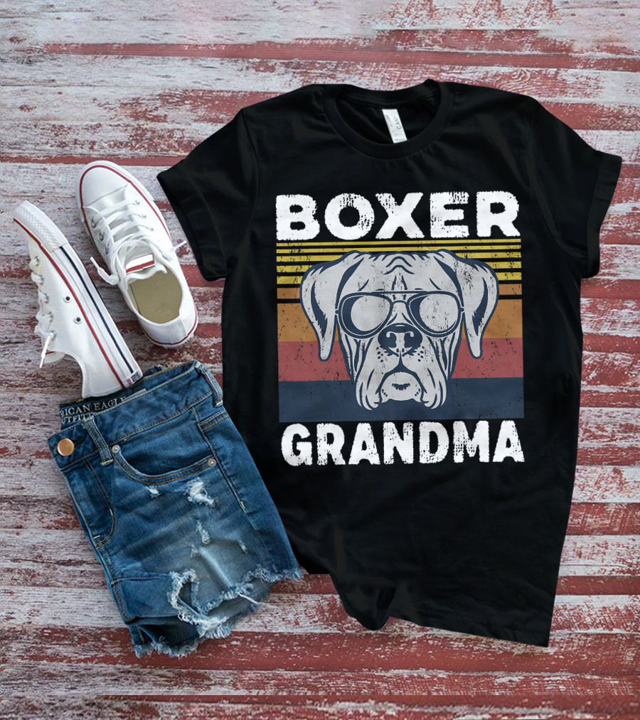 Boxer Grandma Dog Breed Pet Owner Lover Retro Sunglasses T-Shirt