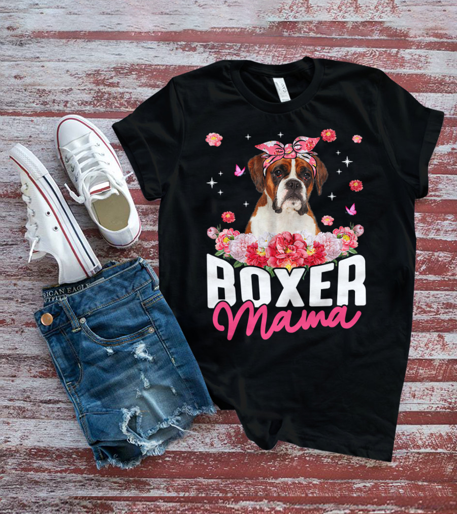 Boxer Mama Flower Bandana Blossoms And Butterflies T-Shirt