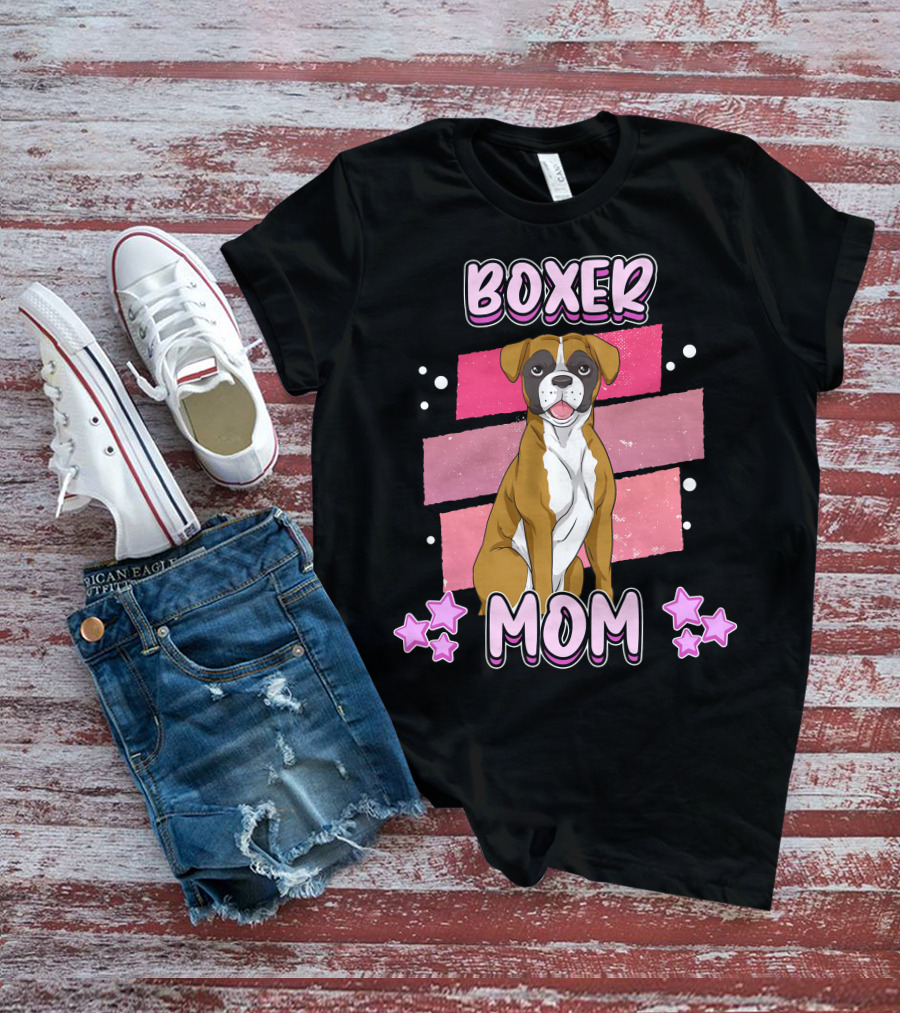 Boxer Mom Pink Stars Funny Dog Saying T-Shirt