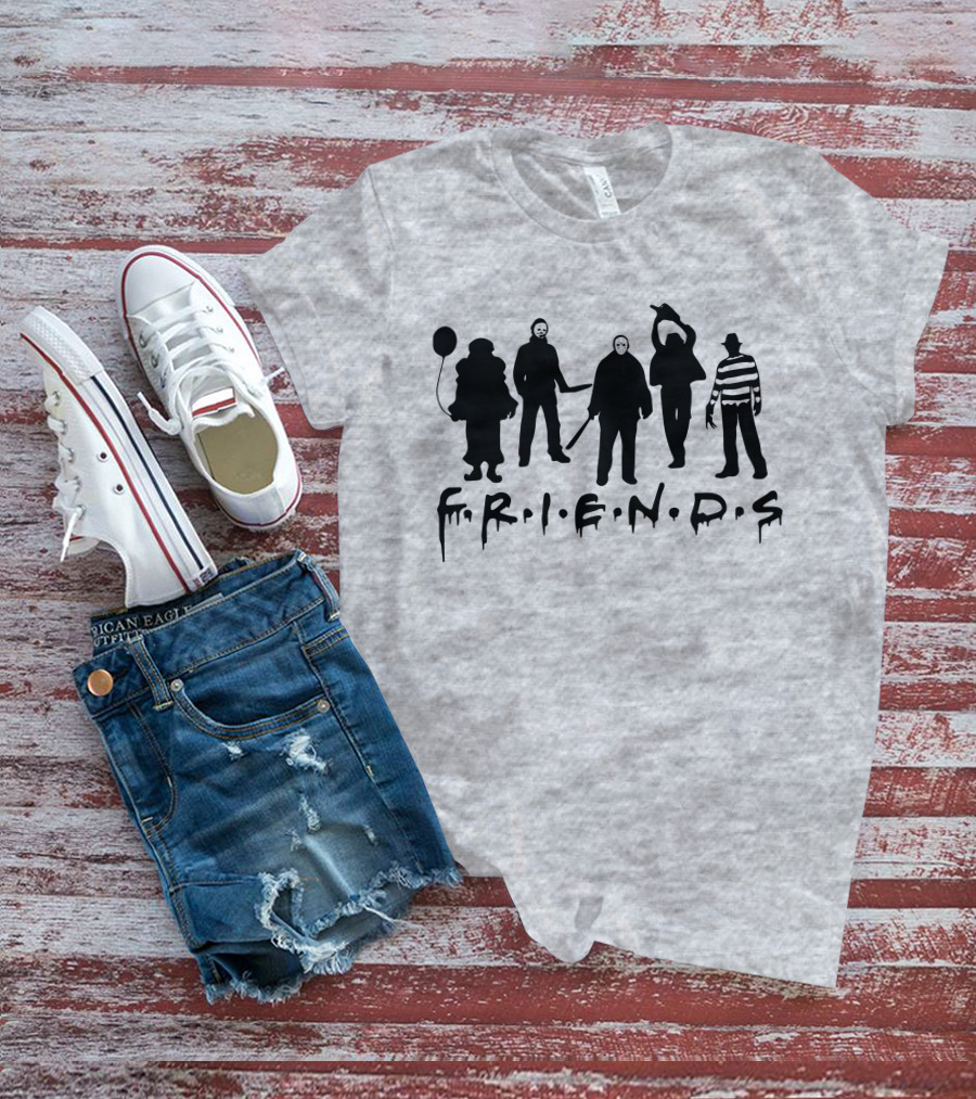 F.R.I.E.N.D.S Halloween Horror Movie Characters With Balloon And Stripes T-Shirt