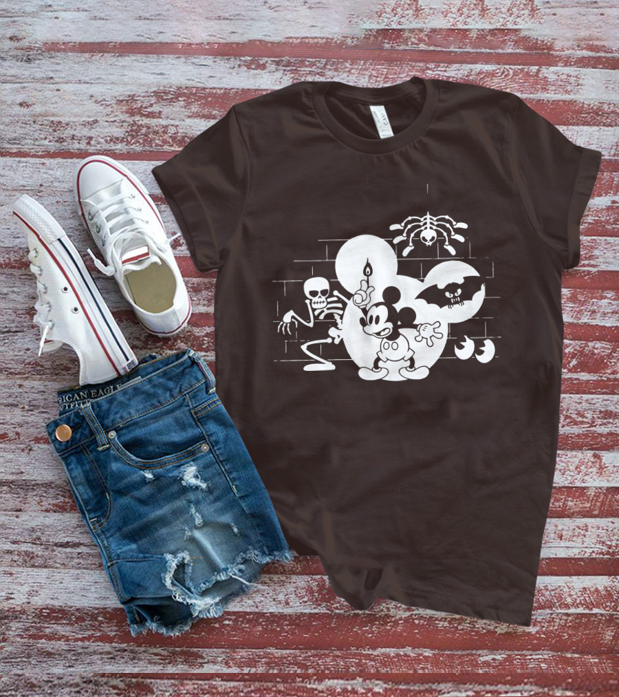 Mickey Mouse Haunted Halloween Mansion With Skeleton And Bat T-Shirt