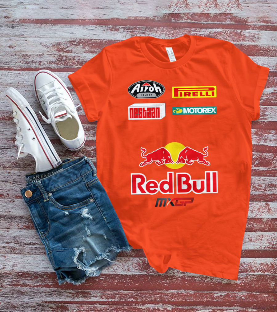 The JEFFREY HERLINGS Airoh Pirelli Nestean Motorex Red Bull MXGP Shirt offers a regular fit. Made from 100% ring-spun cotton that is pre-shrunk to help maintain size and shape after washing. Features reinforced construction details for durability. Available in U.S. standard sizes S-5XL to accommodate various body types.