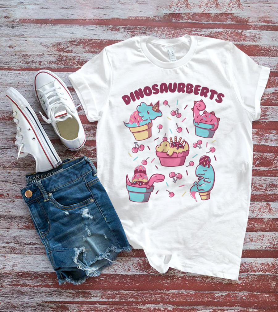 Dinosaurberts Kawaii Ice Cream And Cherries Delight T-Shirt