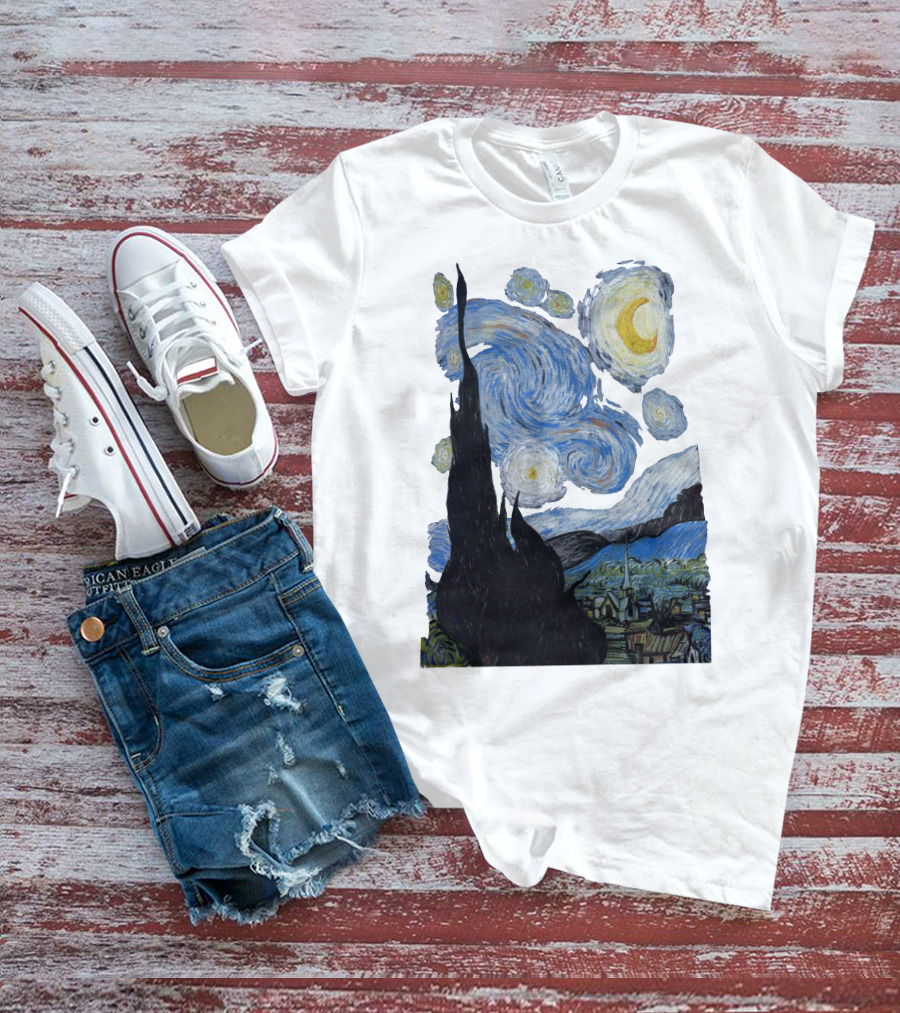The Starry Night Vincent Van Gogh Painting Swirls and Sky Shirt offers a regular fit. Made from 100% ring-spun cotton that is pre-shrunk to help maintain size and shape after washing. Features reinforced construction details for durability. Available in U.S. standard sizes S-5XL to accommodate various body types.