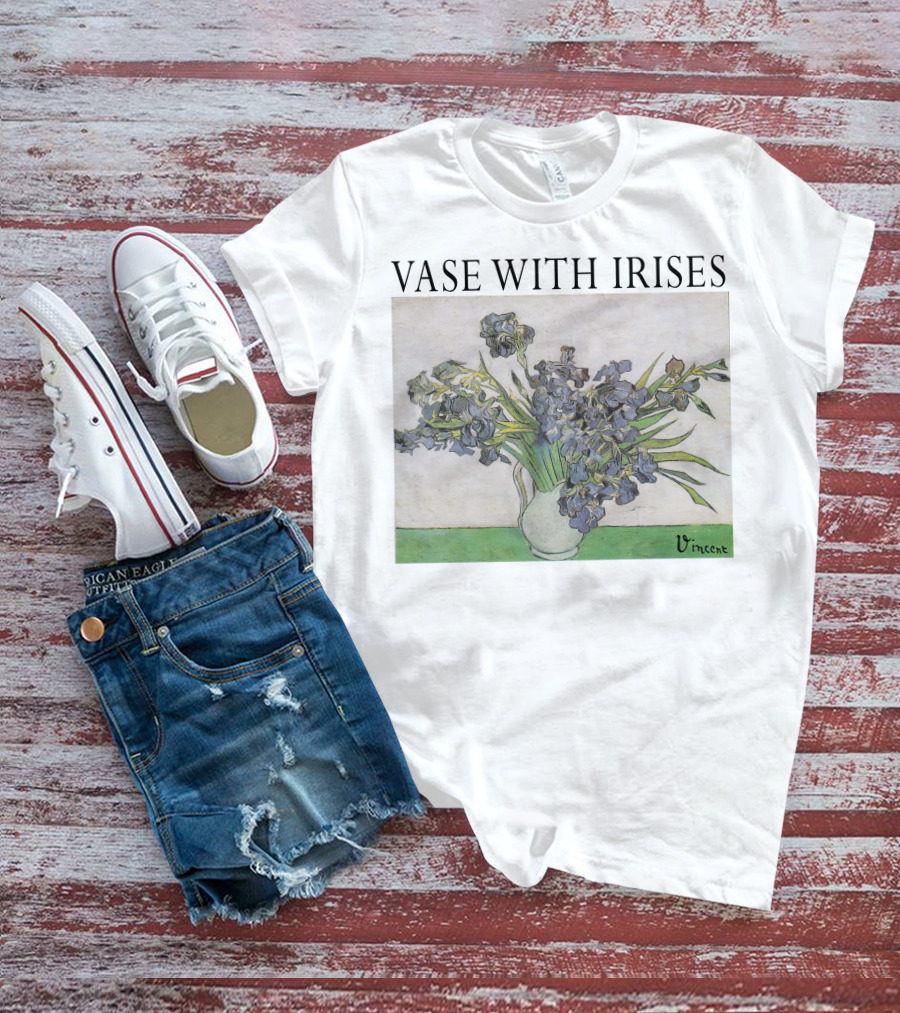 The Vase with Irises Vincent Shirt offers a regular fit. Made from 100% ring-spun cotton that is pre-shrunk to help maintain size and shape after washing. Features reinforced construction details for durability. Available in U.S. standard sizes S-5XL to accommodate various body types.