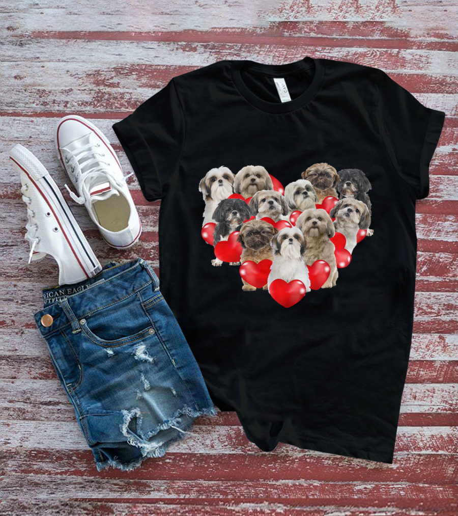 Shih Tzu Heart Puppies Valentine's Day Dog Love T-Shirt
