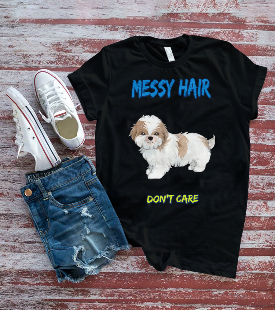 MESSY HAIR DON'T CARE Cute Puppy T-Shirt