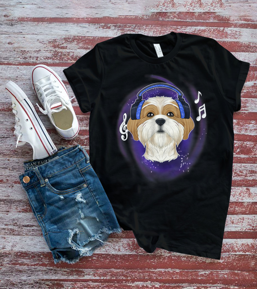 Cute Shih Tzu DJ Headphones Music Lover T-Shirt