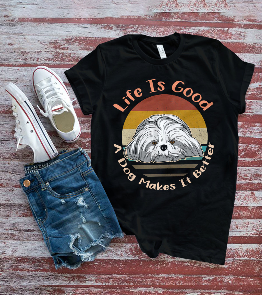 Life Is Good A Dog Makes It Better Shih Tzu T-Shirt