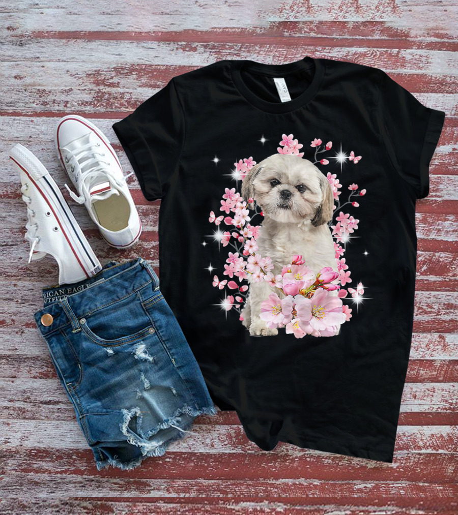 Shih Tzu Dog Sakura Japanese Cherry Blossom T-Shirt