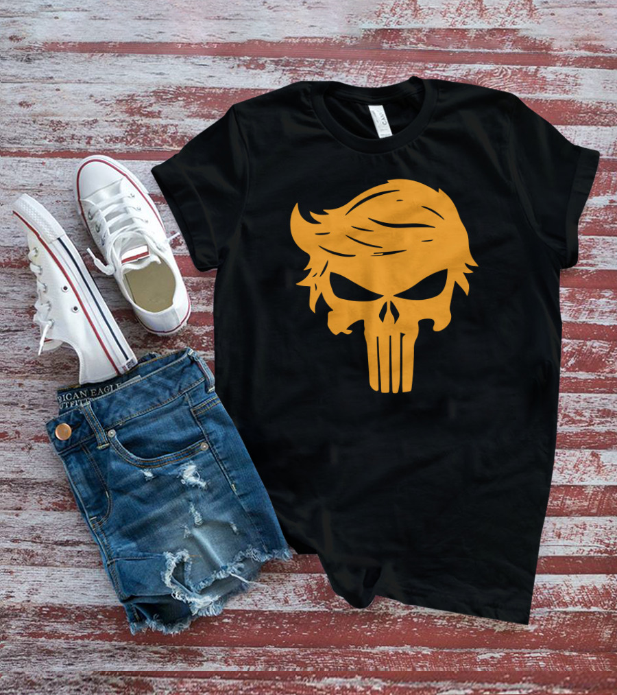 The Orange Man Bad Punisher Skull Shirt offers a regular fit. Made from 100% ring-spun cotton that is pre-shrunk to help maintain size and shape after washing. Features reinforced construction details for durability. Available in U.S. standard sizes S-5XL to accommodate various body types.