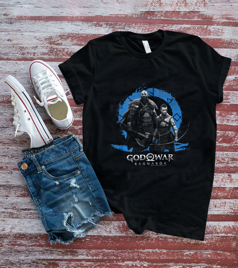 Kratos And Atreus In God Of War Ragnarok Symbolic Blue Circle T-Shirt