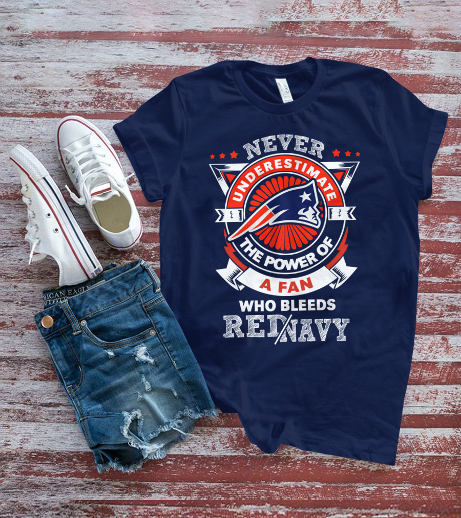 Never Underestimate The Power Of A Fan Who Bleeds Red Navy New England Patriots T-Shirt