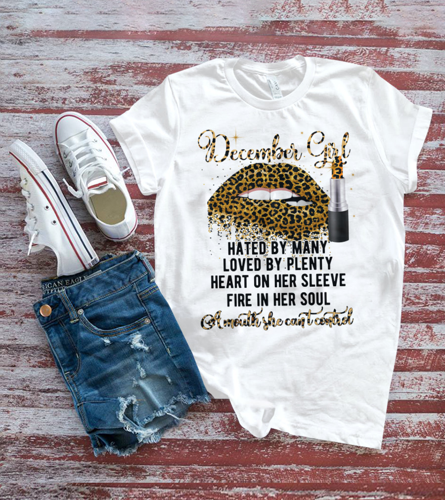 December Girl Hated By Many Loved By Plenty Heart On Her Sleeve Fire In Her Soul A Mouth She Can't Control T-Shirt
