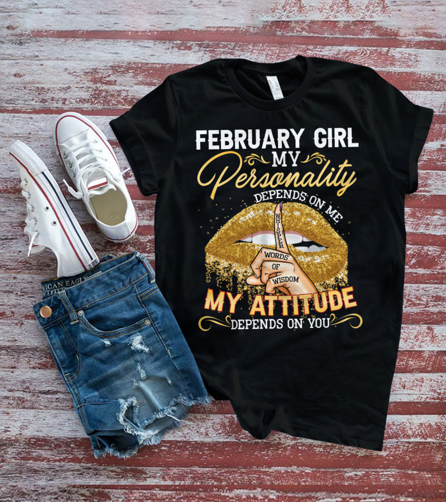 FEBRUARY GIRL MY PERSONALITY DEPENDS ON ME WHISPER WORDS OF WISDOM MY ATTITUDE DEPENDS ON YOU T-Shirt