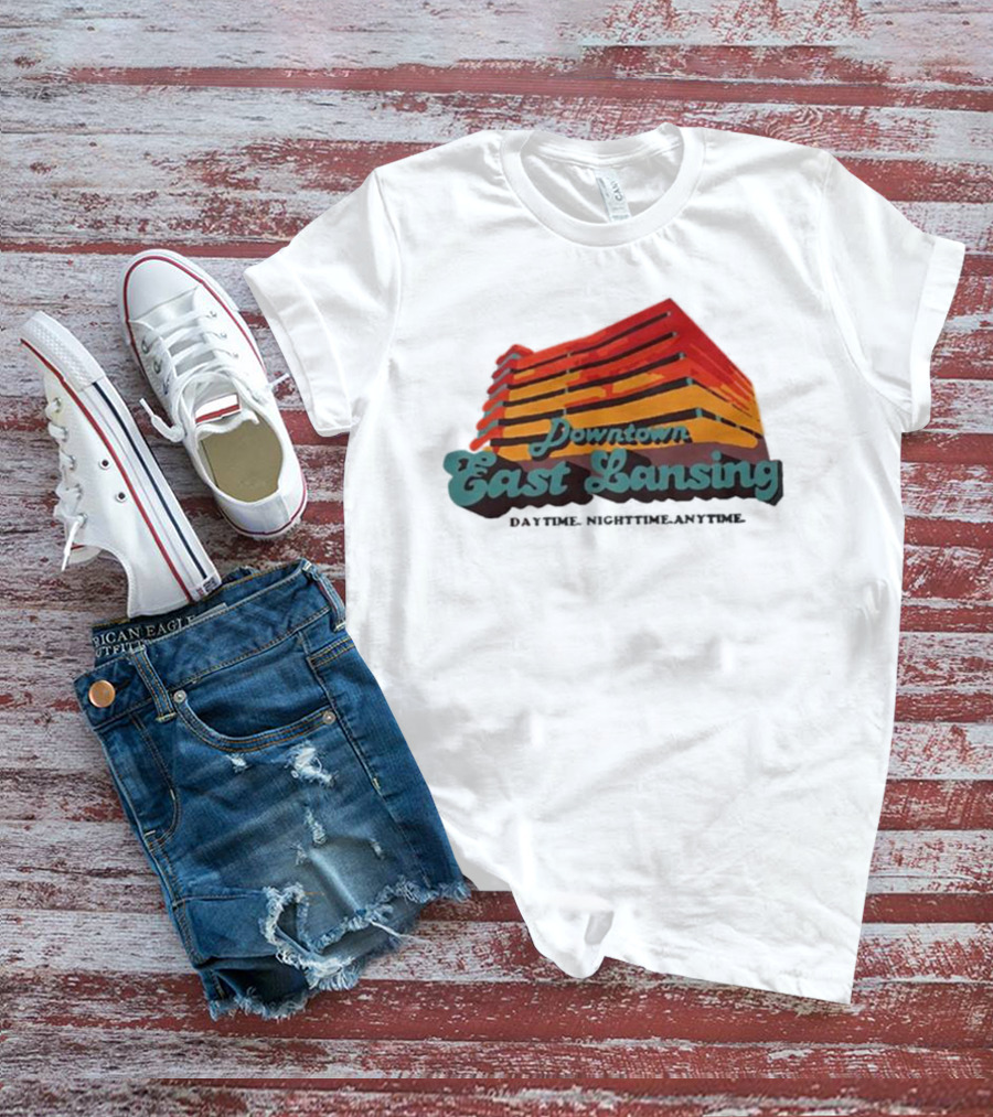 Downtown East Lansing Daytime Nighttime Anytime Retro Skyline T-Shirt